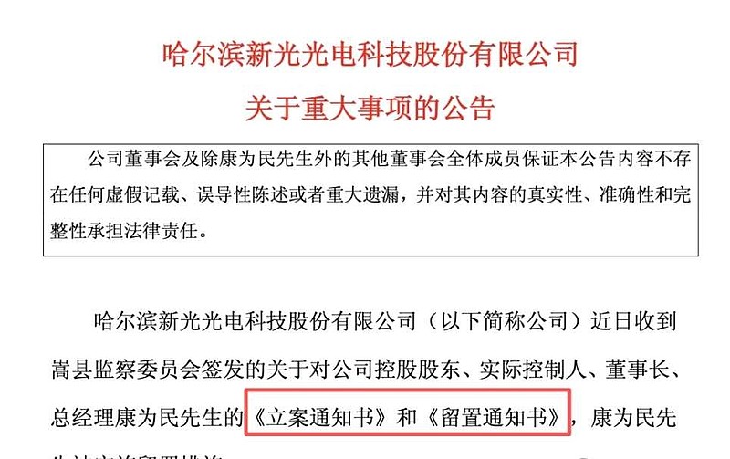 $臻镭科技(SH688270)$有人担心公司留置问题。大家可对比一下今晚新光光电的公告,见下图:真有问题是留置加立案, 臻镭是只留置不立案,问题不大。另外,公司董事长这个留置,通知的是家人,说明不是公司的事情,而家属在获悉情况后,出于让公司及时掌握核心人员状态、保障经营稳定的考虑,主动将信息传递给上市公司。今晚新光光电是通知的上市公司,区别不言而喻。因此,大家可以放心了。