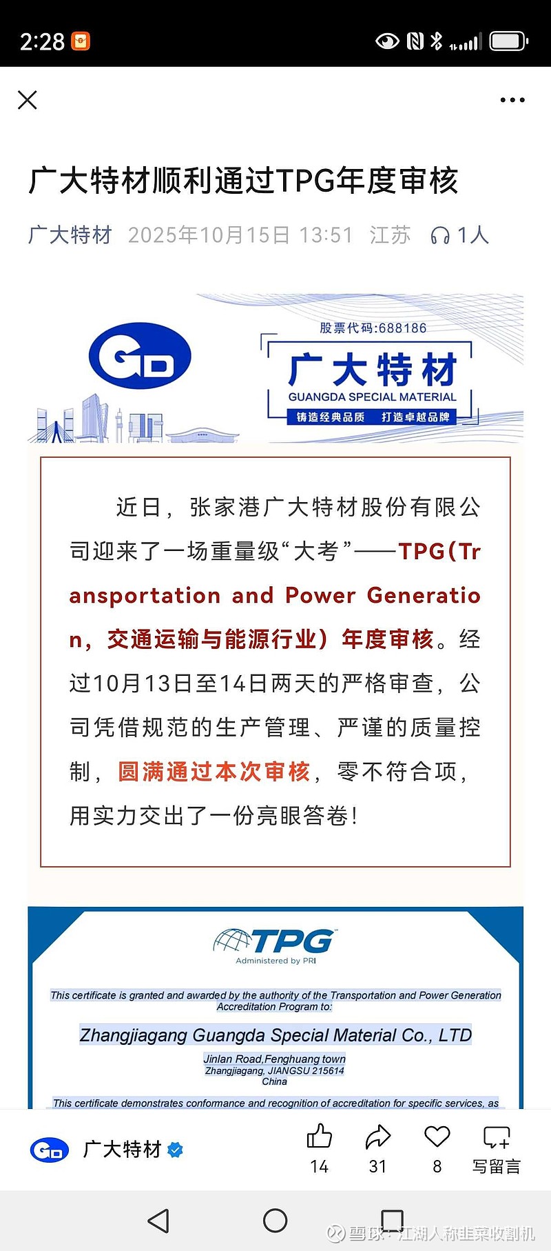 广大的基本面还是可以的,但是呢我感觉明后年的增速就没有这么好了,周期性很明显的板块