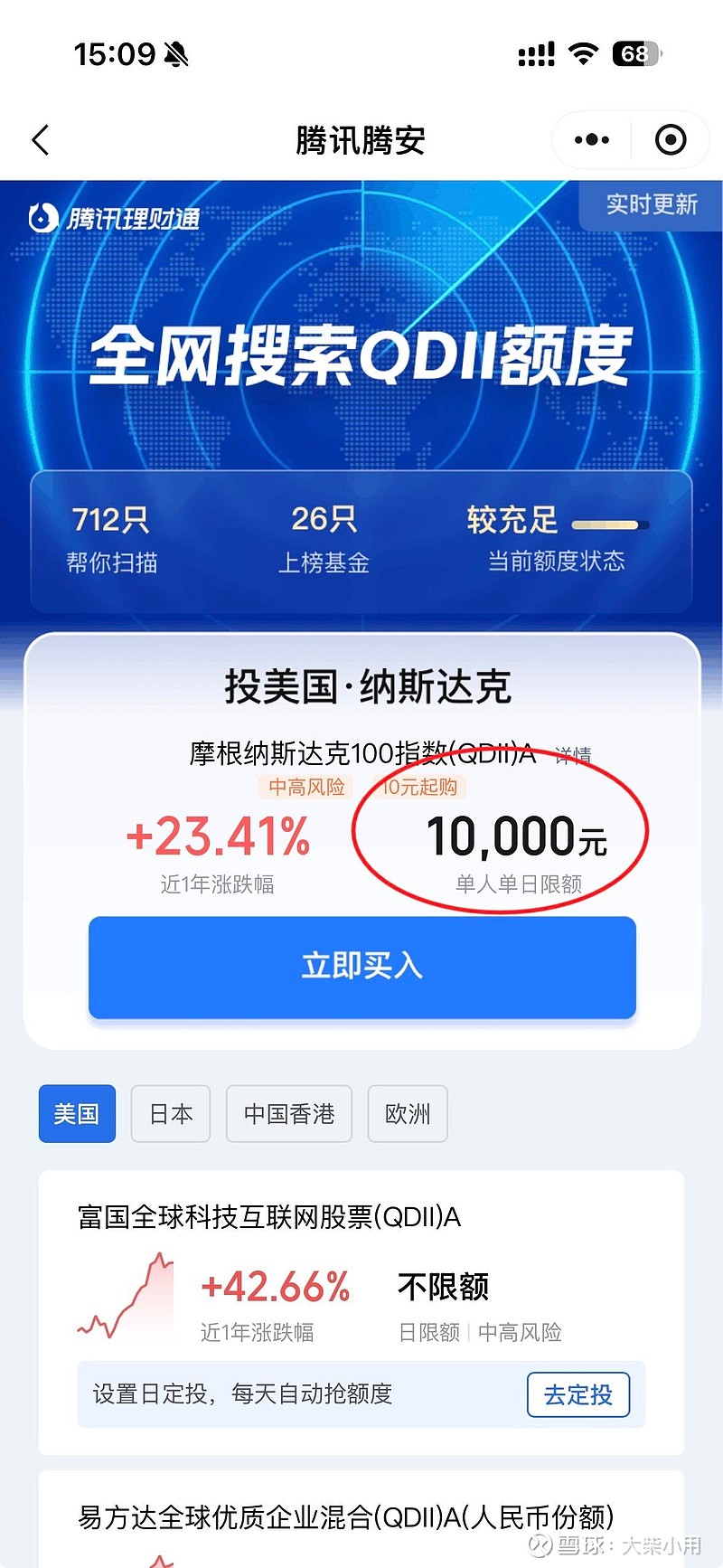 没想到话音刚落,下午收市后就收到了最新消息:摩根场外纳指的单日申购额度,从 10 万骤降到 1 万。 大额只给了一天,窗口一闪而过。