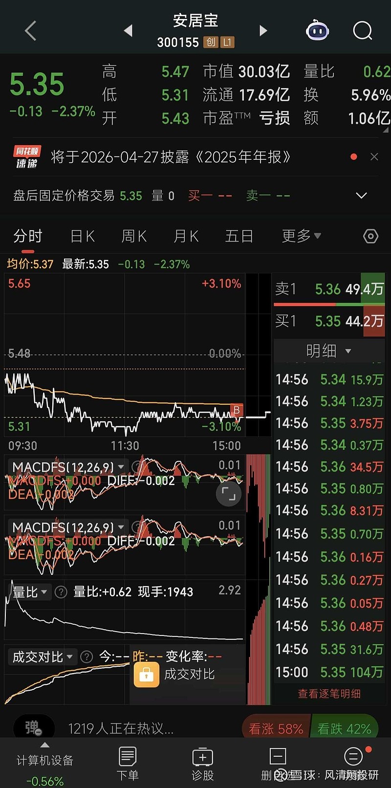 $安居宝(SZ300155)$