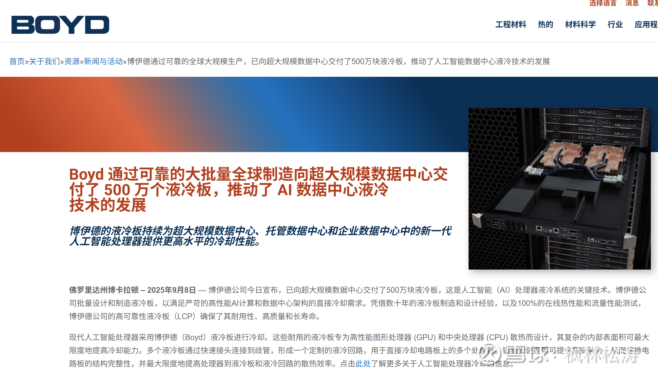 1?【核爆级边际变化】:众捷汽车通过Boyd切入英伟达GB200液冷供应链,已供货数据中心液冷板组件!