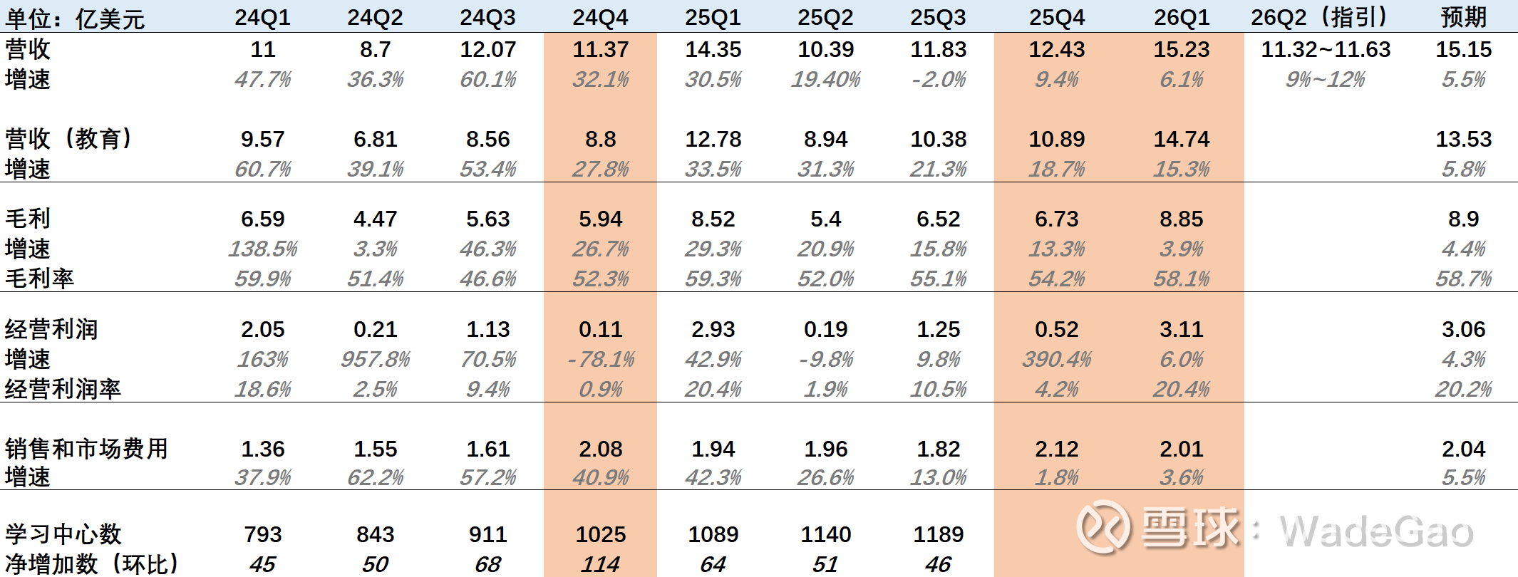 营收15.23亿美元,同比上升6.1%,增长主要来自教育新业务带动。