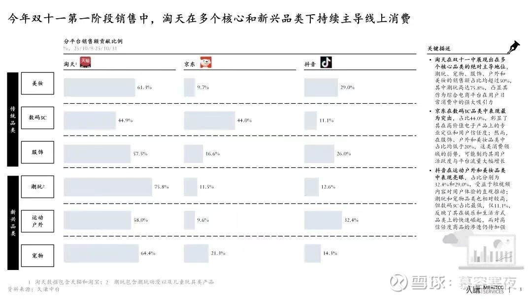 毕竟双11期间淘天在美妆、数码IC、服饰、潮玩、运动户外、宠物等多个“近场”特征的细分领域销售额占据绝对优势。