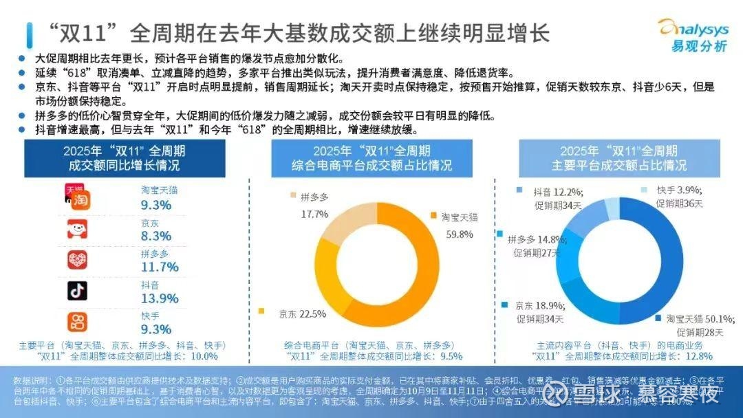 按成交额计算,淘天今年双11大促启动时间在主要电商平台中偏晚,但淘天双11全周期GMV占比依旧高达50.1%。淘天已经也发布,取得了四年来最佳增速,况且要注意,这里面不含外卖,淘天GMV基数本就最大,成交额增速依然有9.3%,与其他电商平台大致相仿,可间接说明闪购已助力淘天在远场形成优势。