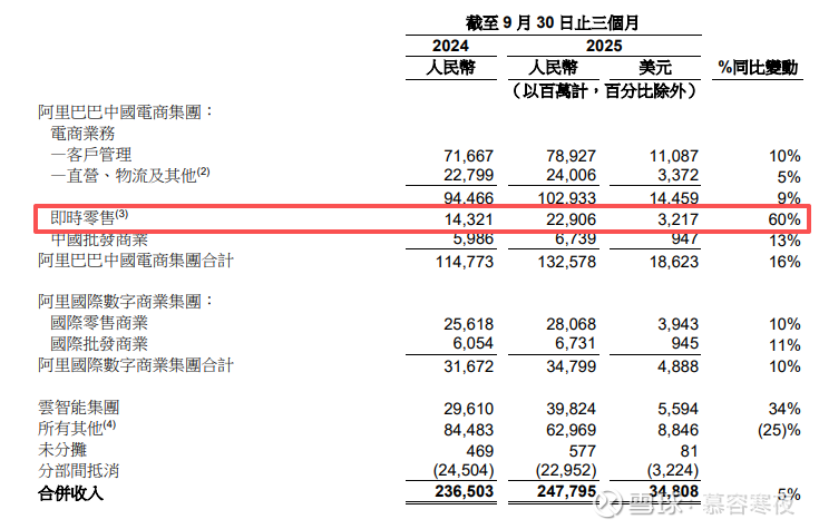 由于淘宝便利店等战略是在9月之后才广泛铺开的,淘宝闪购本季度近场还未充分发力。预计四季度及明年会是淘宝闪购近场发力期。
