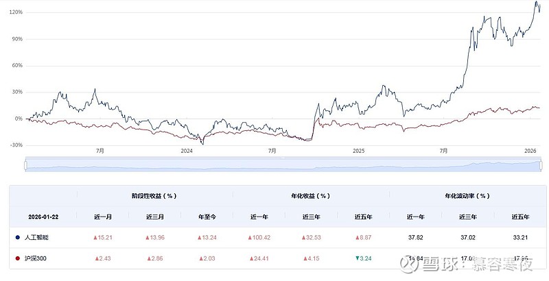 至1月22日收盘,中证人工智能产业指数近一年上涨100.42%,近三年年化收益率32.53%。AI堪称本轮牛市核心主线。