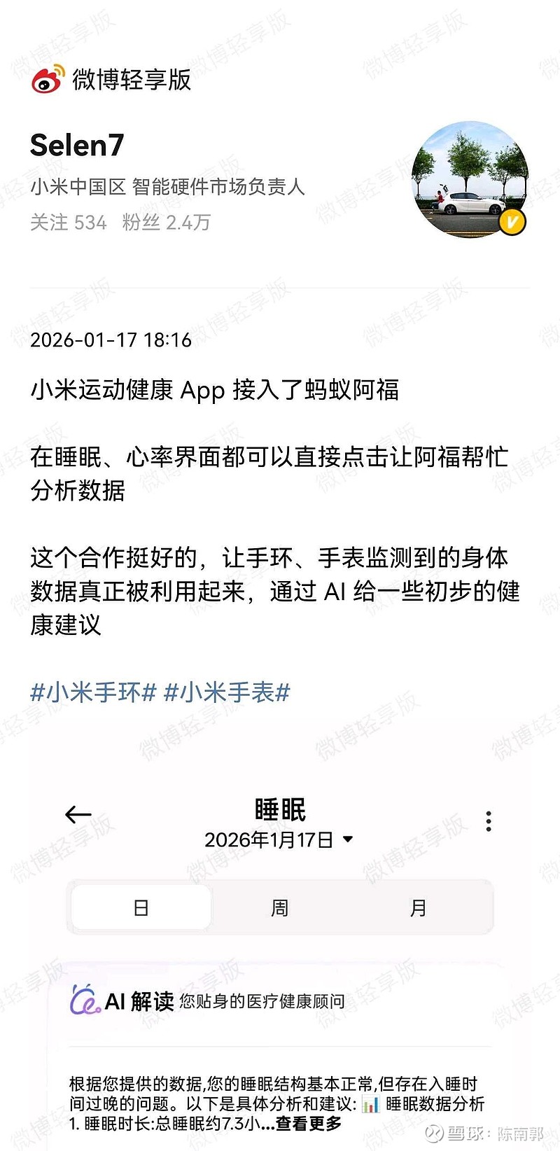 $小米集团-W(01810)$ 今年小米和阿里除了速卖通深度合作外(超级品牌出海计划),iot接入蚂蚁阿福AI能力又是一个重磅消息,自己投入巨资研发mimo,理论上是竞争关系,却依然在健康垂直领域选择接入阿福,感觉小米和阿里会步入蜜月期?难道中概巨头们会开始学习美股七姐妹的网状共生?