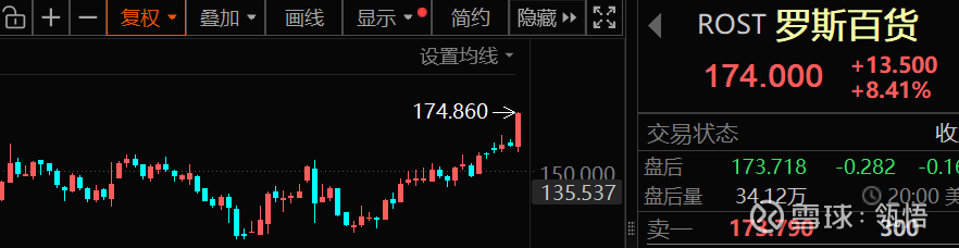 罗斯百货$罗斯百货(ROST)$ (罗斯百货公司经营着两个品牌的低价零售服装店和家居时装店——Ross Dress for Less和dd's DISCOUNTS。罗斯是美国最大的廉价服装和家居时尚连锁店,截至2020年2月1日,在39个州、哥伦比亚特区和关岛拥有1546家分店。罗斯为整个家庭提供一流的、符合季节要求的名牌和设计师服装、配件、鞋类和家居时尚,每天可在百货公司和专卖店的正常价格基础上节省20%至60%的折扣。):