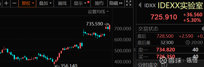 IDXX(IDEXX实验室公司于1983年在特拉华州注册成立。公司主要为动物兽医、畜禽、乳制品和水测试市场开发、制造和分销产品并提供服务。公司销售一系列便携式电解质和血气分析仪,用于人体护理医疗诊断市场。):