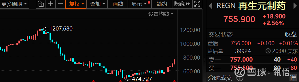 再生元制药$再生元制药(REGN)$ (再生元制药公司是一家领先的生物技术公司,为患有严重疾病的人发明、开发并商业化改变生命的药物。再生元制药由医学科学家创立并领导,其反复和持续地将科学转化为医学的独特能力导致了许多FDA批准的治疗和候选产品的开发,几乎所有这些都是在再生元制药的实验室自主研发的。再生元制药的药物和管道旨在帮助眼病、过敏性和炎症性疾病、癌症、心血管和代谢性疾病、疼痛、血液病、传染病和罕见疾病的患者。):