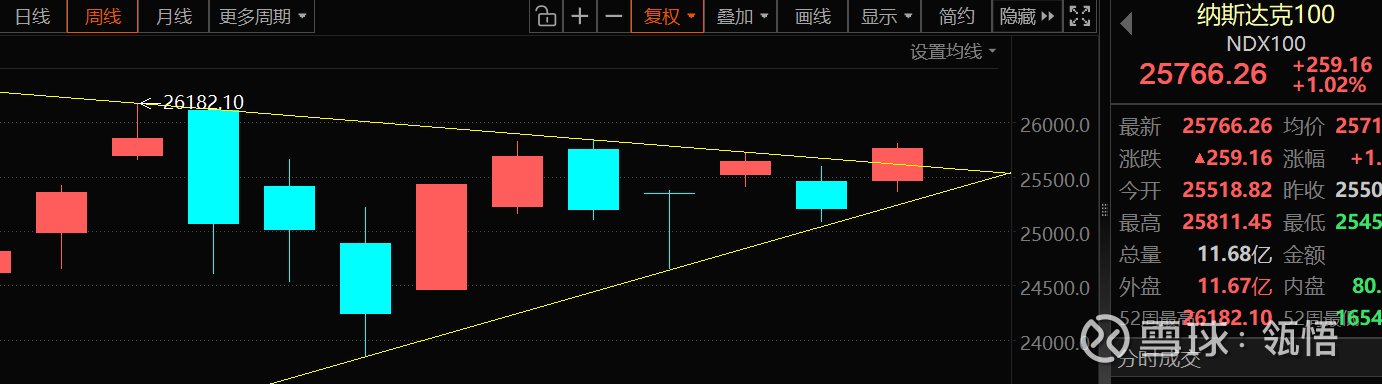 纳指100$纳斯达克100指数(.NDX)$ 本周(1月5-9日)累涨2.22%,周线突破整理三角形: