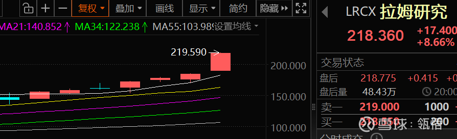 1、拉姆研究:本周涨17.99%,半导体板块的二线股,创历史新高。