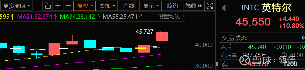 2、英特尔$英特尔(INTC)$ :本周涨15.67%,推出新产品。站稳48,前途无量。