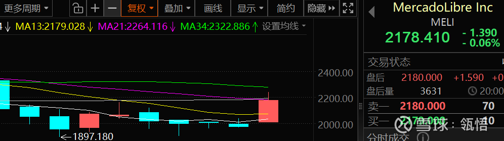 5、MELI:本周上涨10.37%,互联网应有,有望走出底部。