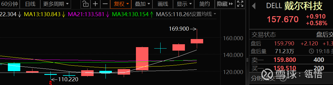 在美国股市大跌的背景下,戴尔科技$戴尔科技(DELL)$ 一度创出近两年新高。