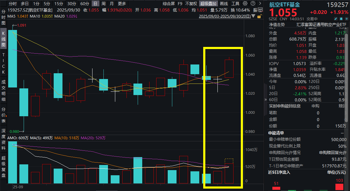 9月30日,市场继续走高,航天航空板块涨幅居前。国睿科技涨超9%,洪都航空、西部超导涨超7%,航天彩虹涨超6%。热门ETF——$航空ETF基金(SZ159257)$ 涨超2%。