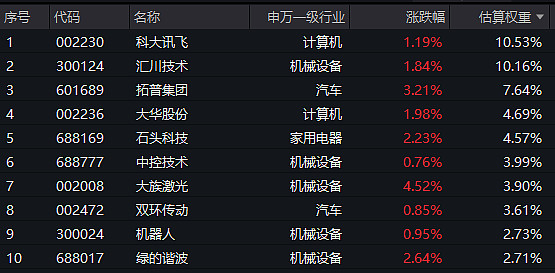 【机器人ETF基金(159213)标的指数前十大成分股】