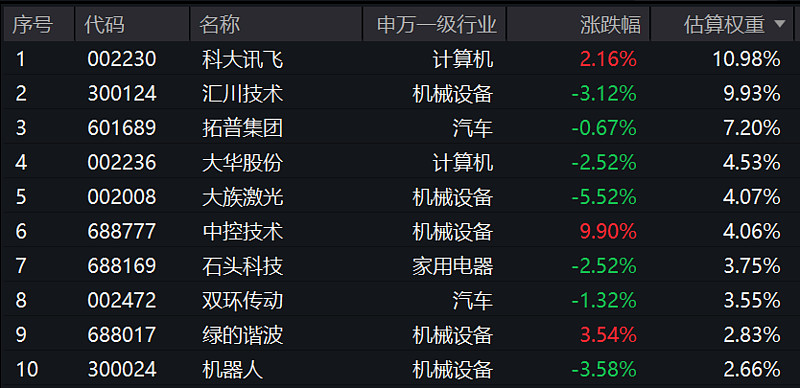 【机器人ETF基金(159213)标的指数前十大成分股】