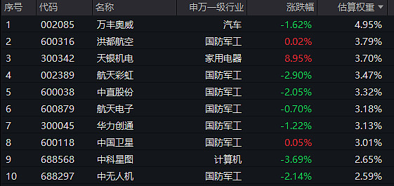 航空ETF汇添富(159257)标的指数成分股涨跌不一,天银机电等涨超8%,中国卫星、洪都航空等微涨,航天彩虹、中直股份等回调。
