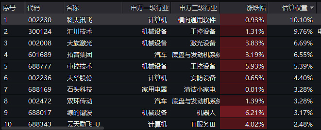 【机器人ETF汇添富(159213)标的指数前十大成分股】
