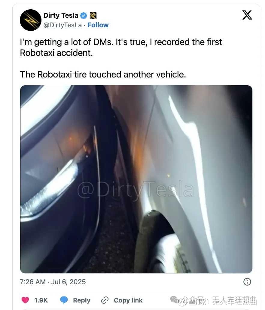 开启试运营2天后,特斯拉Robotaxi全球首撞