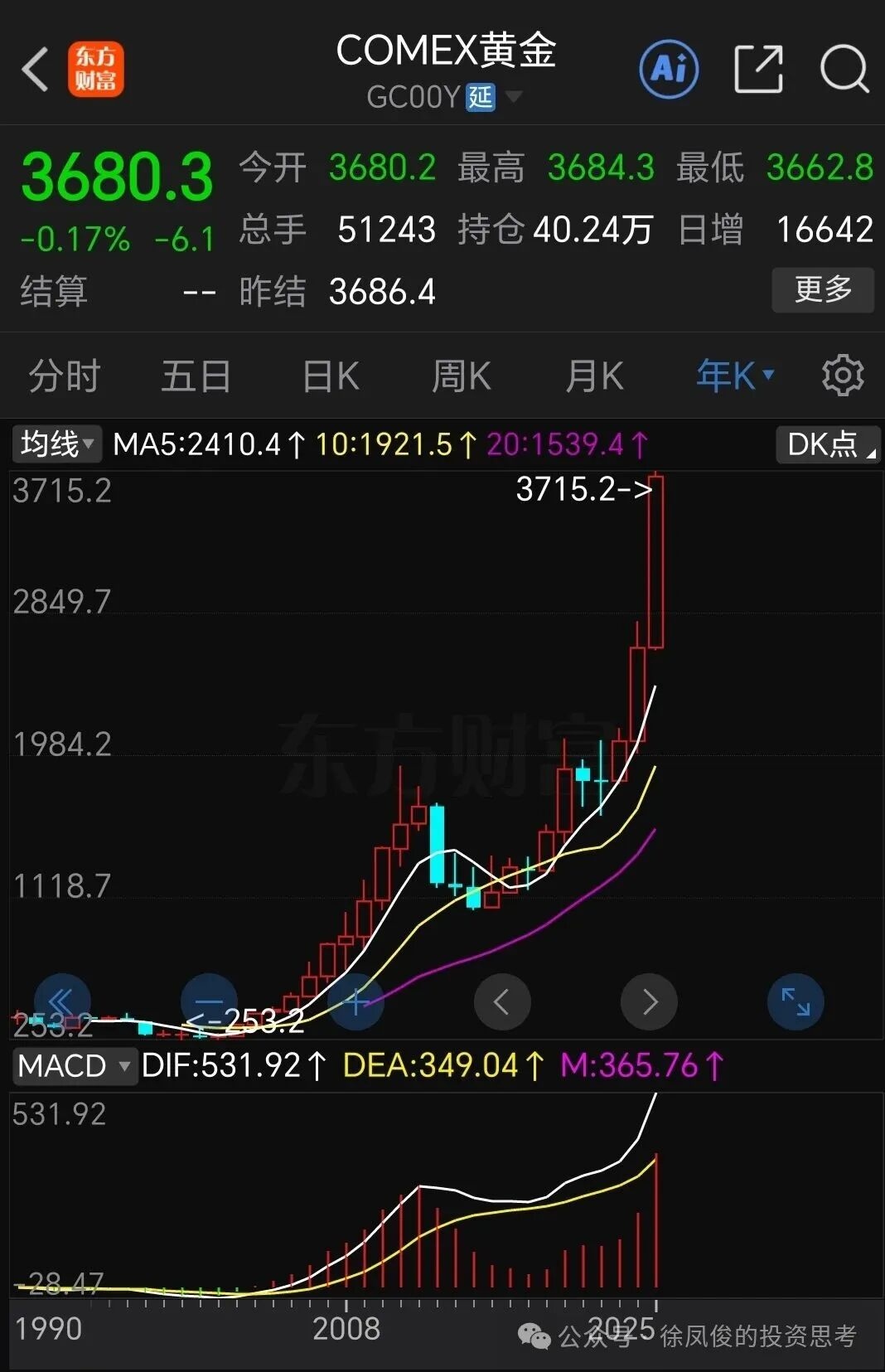 虽然黄金价格上涨不快,但超长期看,年化几个点的成长还是非常确定的。