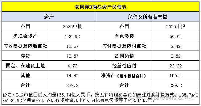 3、当前B股价格极具吸引力,从资产负债表上看,类现金扣掉负债,加上存货(因为存货是黄金,可以很方便的原价变现)竟然比市值还要低。