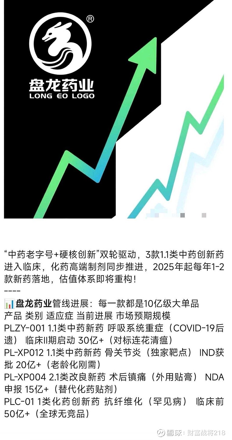 $盘龙药业(SZ002864)$ $华海药业(SH600521)$ $方盛制药(SH603998)$ 盘龙药业:昨晚终于公布临床进展了!获批临床的是之前提到的第三款PL-XP0042这款中药改良贴膏创新药+叠加李调研要求高质量推动医药创新超级利好!