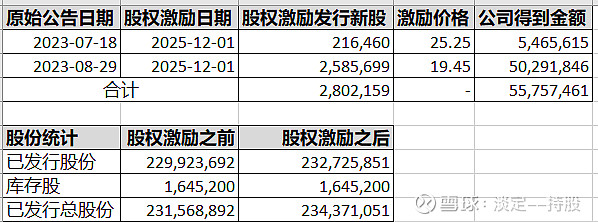 解读今天的公告,今天没有回购,相反,今天发行新股用于股权激励,见下表。
