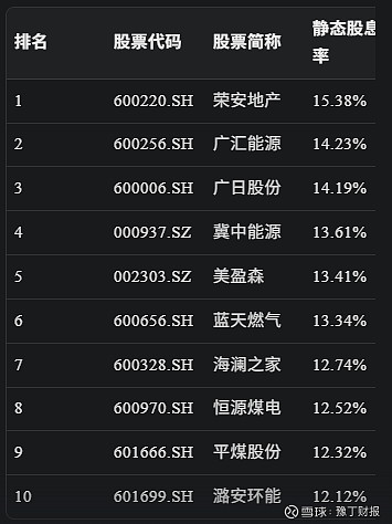 从多个榜单来看,高股息率股票主要集中在能源、金融、交通运输、公用事业和部分传统消费行业。