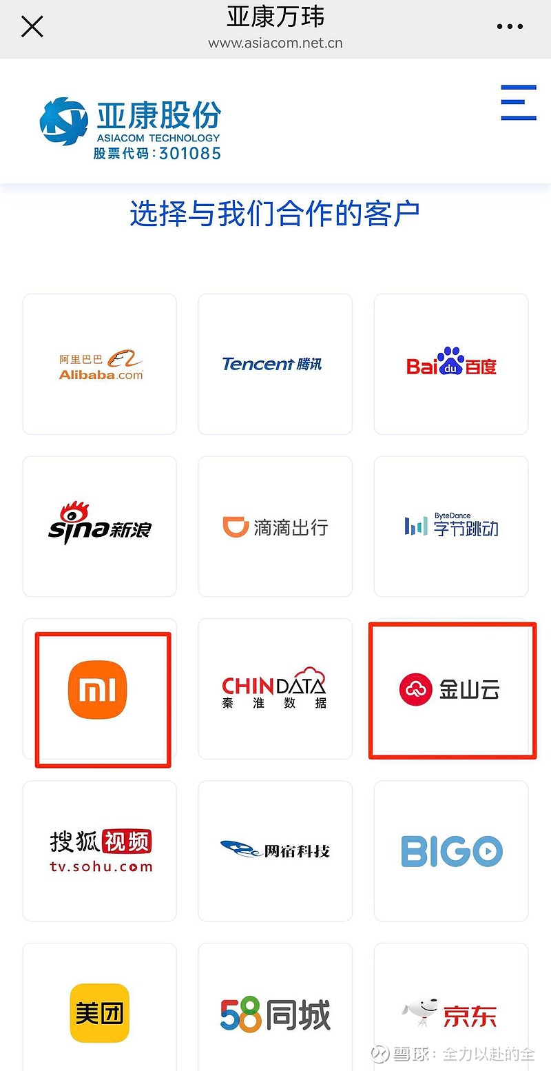 小米现在正全力推进AI大模型布局,尤其是爆火的小米龙虾miclaw,可以叫做米虾🦞$亚康股份(SZ301085)$亚康凭借“设备集成-运维保障-算力租赁”三位一体业务体系,为小米生态提供全流程算力支撑,受益于小米MiMo大模型生态扩张,后续合作有望持续深化,业务增量明确。下面是亚康股份官网的图,官方证实的小米算力服务商