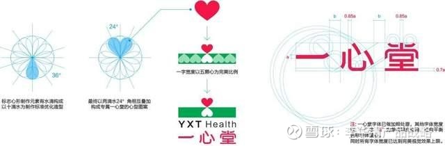 首先,标志创作的主体离不开“心”的形态,心的形态有很多种变化,到底哪一种形态最能代表一心堂的“心”呢?我们将创意思路回归到了一心堂最初的起点,就是那个初心,也是阮总儿时心怀的承诺与信念,“十滴水”的故事。标志的“心形”就以“十滴水” 为原型进行优化,最后以两滴水24度角相互叠加,生成一心堂专属的“心形”。