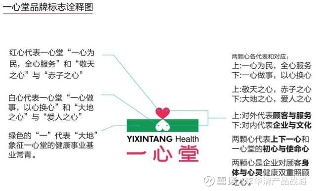 标识的释义:红心代表一心堂对外“一心为民,全心服务”和“敬天之心”与“赤子之心”。白心代表一心堂对内“一心做事,以心换心”和“大地之心”与“爱人之心”。绿色的“一”代表“大地”象征一心堂健康事业基业常青。