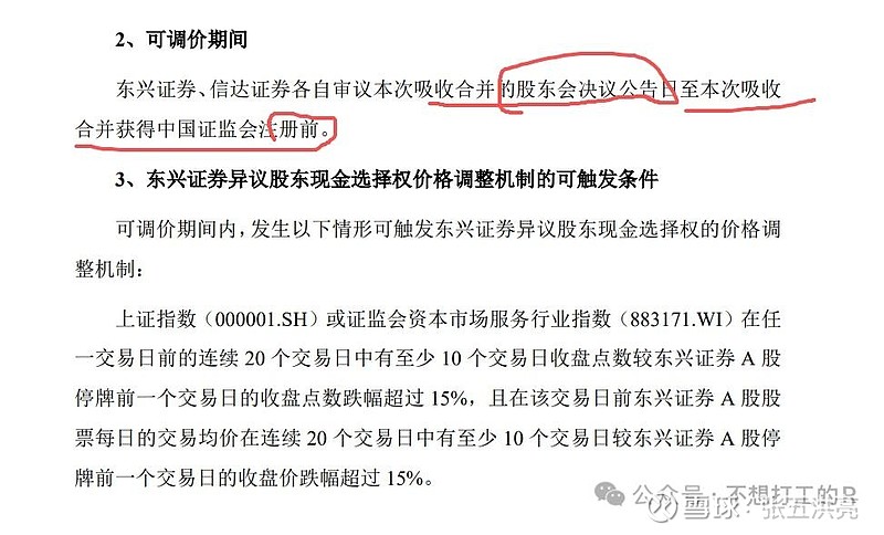 而现在本次吸收合并刚刚通过三家公司的董事会预案而已,也就是说,根本还没有进入“触发调价”的时间窗口。