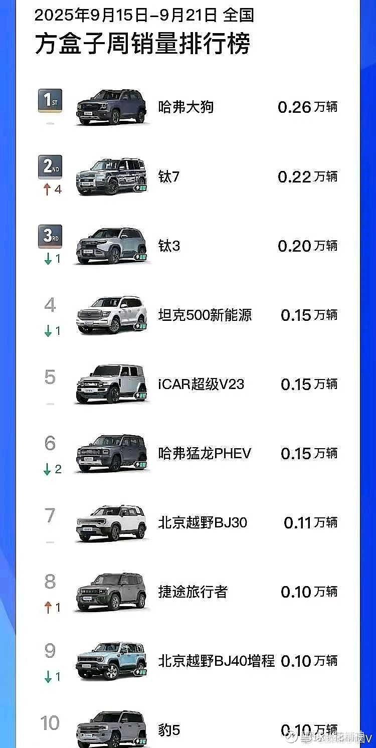 谁知熊甜波不按套路出牌,反手搞了个纯电的suv钛3,硬生生挤进方盒子市场,结果卖的出奇的好,紧接着又搞了个插混的钛7,定位城市suv,凭借方盒子造型和大空间一炮而红,方程豹翻身了!