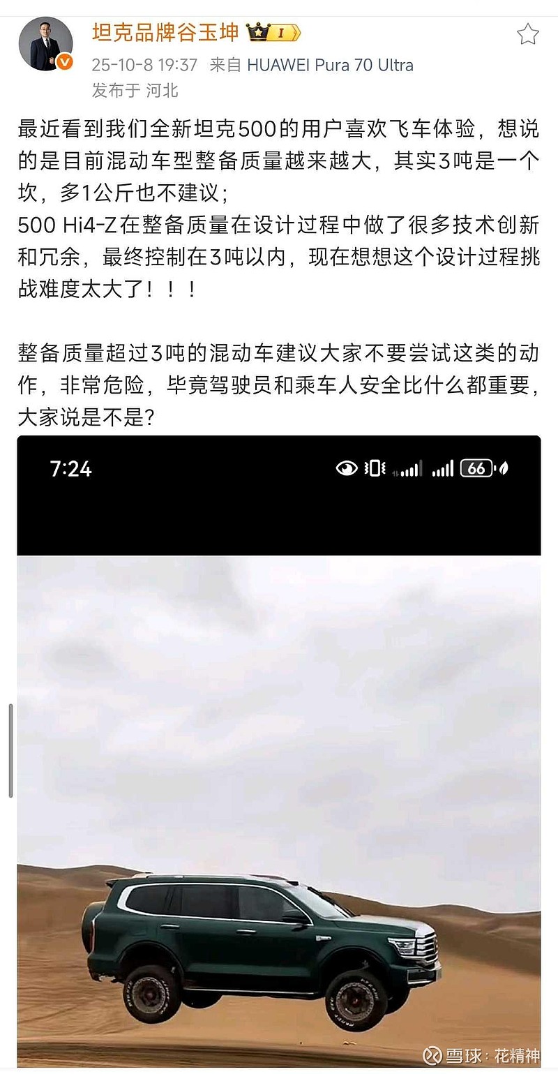 坦克500Hi4-Z车量2980公斤,前后轴双电机,60度大电池,带大梁,前轴行星齿轮组(功率分流)+三挡变速器,后轴迪翁桥加两档变速器,超过5米的车长,这么大的车配置这么全面,还能把重量控制在3吨以内,长城已经把轻量化做到极致了,堆料谁都会,既堆料又控制车重就是个技术活了,这就是魏建军经常强调的接地比压,因为这是越野能力的关键指标,所以买坦克的都是懂越野的人,买长城的都是懂车的人,买长城股票的都是懂魏建军的人,你品,你细品。