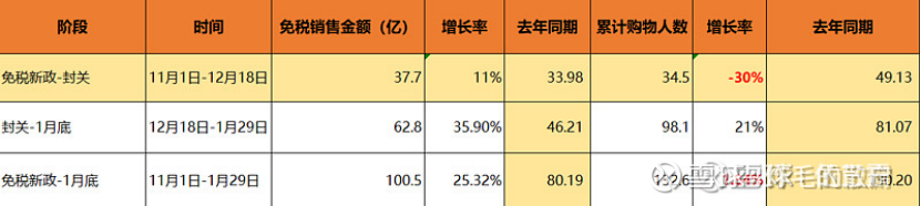 观点二:其实免税新政实施后,第一个阶段免税销售金额其实已经回复正增长了,同比涨了11%,也就是说,业绩方面,去年底其实已经见底了,免税新政是实打实的利好,可以买的东西更多了,即使在人数还没增长的情况下,靠着原来经常去海南购物的那批老用户已经把免税销售金额拉上来了,至于封关后,这个数据就更夸张了,已经同比拉到36%以上了,更别说元旦期间的数据,超级夸张,都翻倍了!