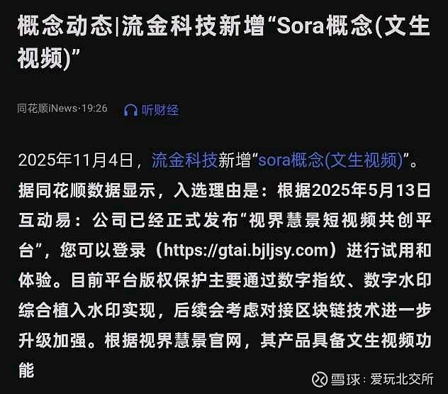 $流金科技(BJ920021)$ $数字人(BJ920670)$ $蓝色光标(SZ300058)$北交所最新添加sora概念,最低价ai应用,之前没被当应用过,有预期差。北交大阳之后调整好几天了,能不能卡一把节点。