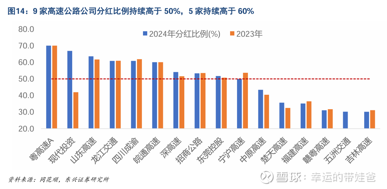 从比较直接的股息率指标看,由于股价大幅回调,A股重点高速公路个股的股息率实现了较为显著的提升。包括宁沪、皖通、 山高、粤高速这几家分红金额较高且分红比例较稳定的公司,股息率在本轮调整后都回到了24年以来的较高水平。从上市公司股息率与国债收益率的差值方面考虑,可以看到23年到25年上半年期间两者差值持续收窄,对应的是资金出于避险需求持续增配高股息资产,股价的提升压低了高速公路股的股息率。但6月以来随着股价回调,上市高速公司的股息率与国债收益率的差值已经回到23年下半年的水平,我们认为已经具备了较强的配置价值。