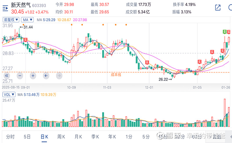 1、关于新天然气这个标的,带娃爸很早就加入自选股,也于去年9月份建了观察仓,陆续在低位执行了“越跌越买”的加仓动作;然而,带娃爸来不及建重仓,股价已经启动了,正如上周五带娃爸发帖聊个人操作时,回复球友关于建仓节奏的疑问,阐述的情况: