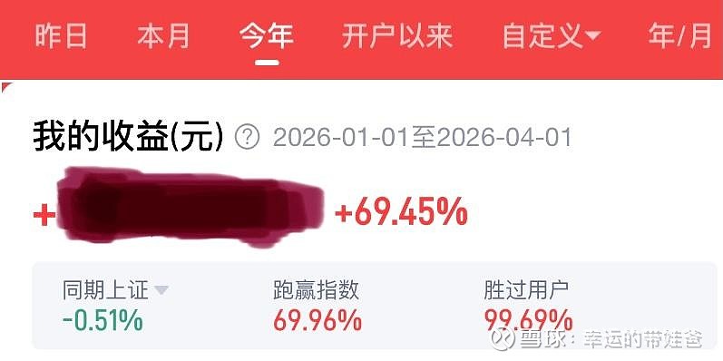 今年截至20260401 朋友惊心动魄地收获了约 70%!