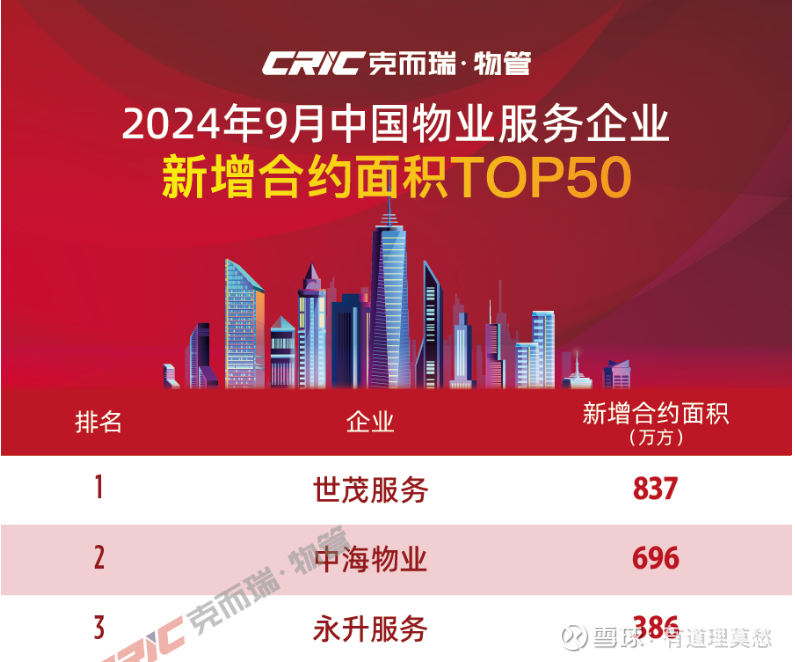 截至9月底,世茂服务的业务覆盖123个城市,为将近1500个项目提供种类丰富的物业配套服务,在管建筑面积为2.22亿m²,合约管理面积也达到了3.43亿m²的头部规模。