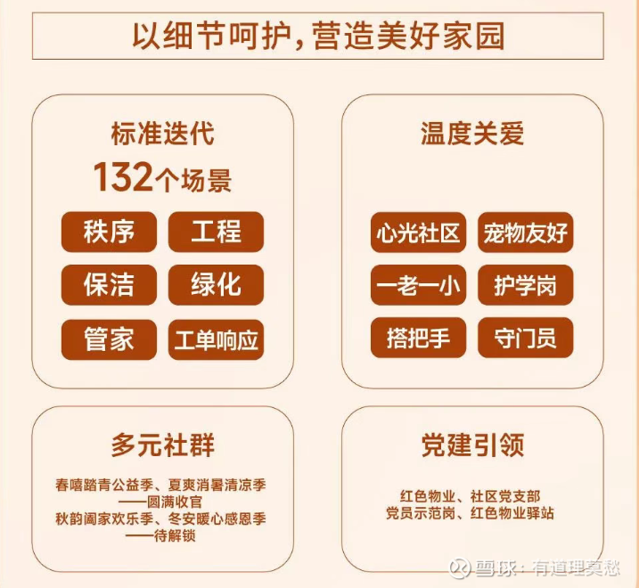 世茂服务通过“品质、服务、标准、文化、管理”等五个维度的焕新,构建从硬件到软件、从内部管理到外部体验的全业态、全场景的体系化升级。