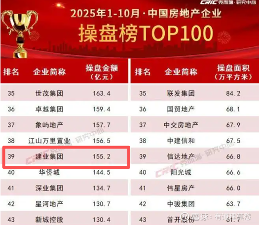 建业累计实现合约销售额155.2亿元,位列百强房企排名的TOP39。