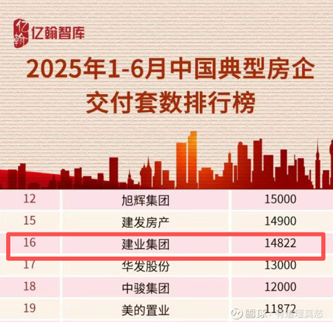 建业累计实现了1.48万套的交付,位列交付房企TOP16。