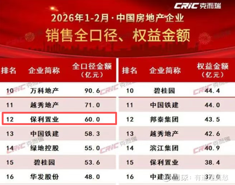 随着各大机构房地产企业1-2月销售排行榜的发布,