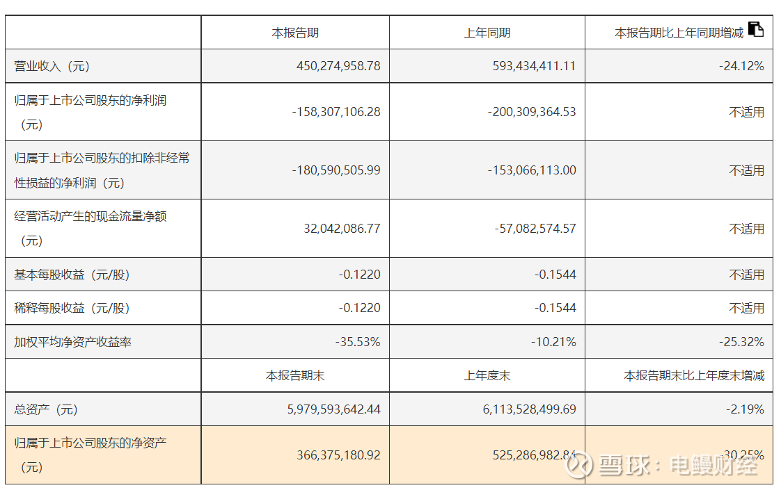 2025年上半年,该公司实现营收4.5亿元,同比减少24.12%;归属于上市公司股东的净利润-1.58亿元。