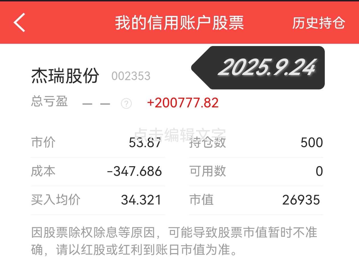 2025年9月24日,今天,杰瑞股份站上了单股盈利20万的平台,时隔四年才上一个台阶,可见价投的艰辛。