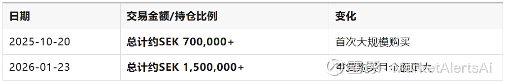 投资洞察:Henrik Theilbjørn在2025年10月20日进行了大量购买后,于2026年1月23日再次大幅增持,且第二次购买总额超过第一次,这种重复购买信号极其重要。内部人士不仅相信公司价值,而且随着股价的变化,进一步增加了投资,这表明他对公司前景的信心在增强,而不是短期投机行为。