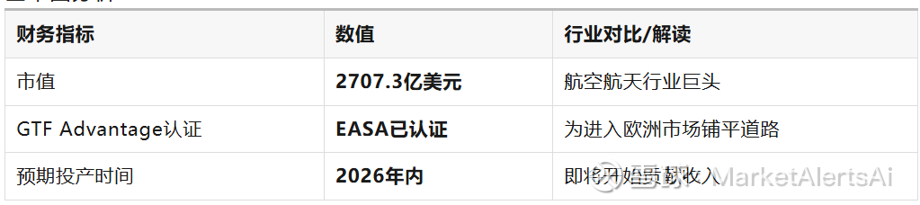 ✅ 技术领先:GTF Advantage发动机获得认证,证明公司在航空发动机技术方面的创新能力
